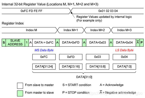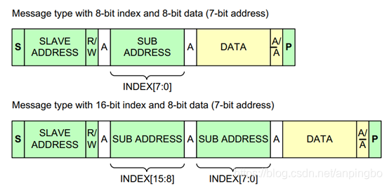 控制端有2根双向线连接,兼容I2C,可以支持400KHz的数据传输。其读写都遵循I2C协议。包括单数据读写以及连续数据读写。最大支持16bit寄存器寻址,能够支持8bit,16bit,32bit,64bit数据宽度。寄存器数据发送顺序是由高到低。