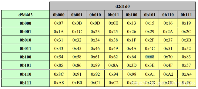 表是(72,64)编码,报文中仅仅使用了前24个实际数据,为(30,24)编码格式。