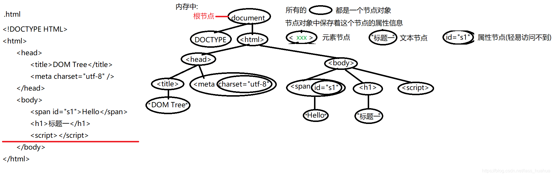 当浏览器读取到一个.html的文件时,自动创建一个.document对象作为根节点,然后从开始扫描.html文件的内容,没扫描到一个元素就相应的添加到根节点的下方。