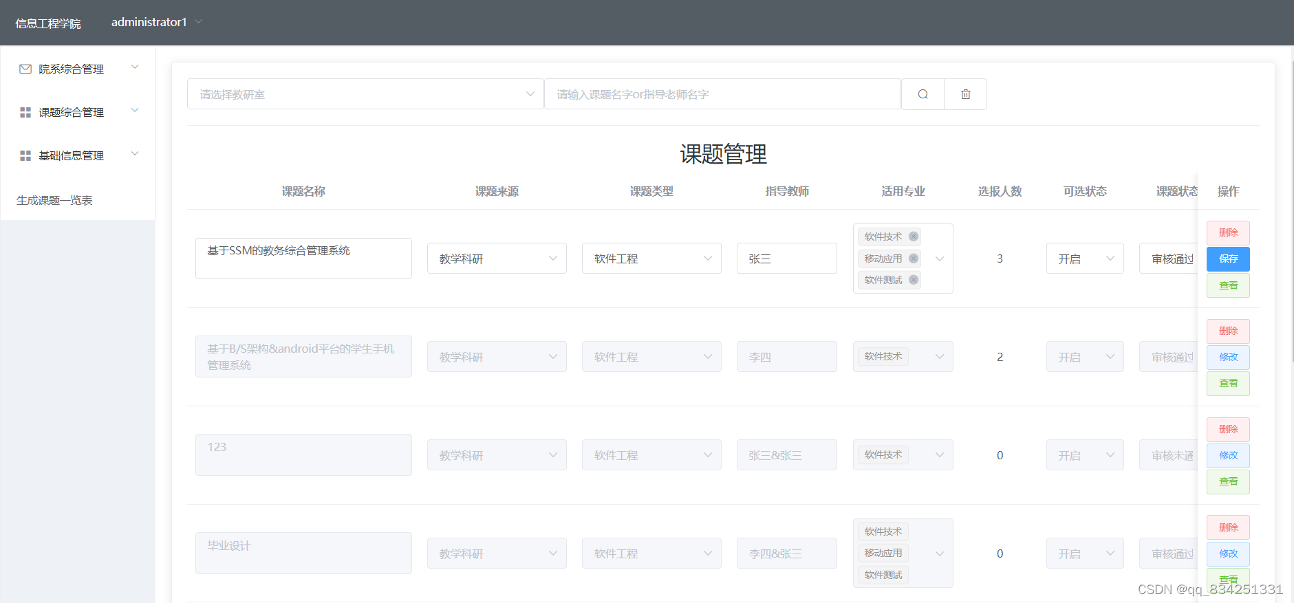 2.课题综合管理(课题来源管理,课题类型管理,课题管理)