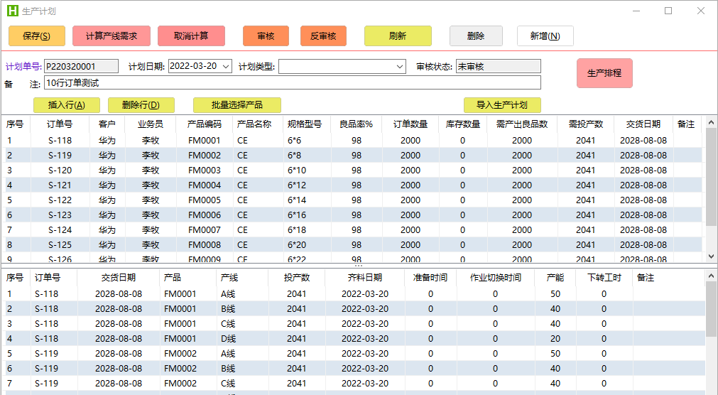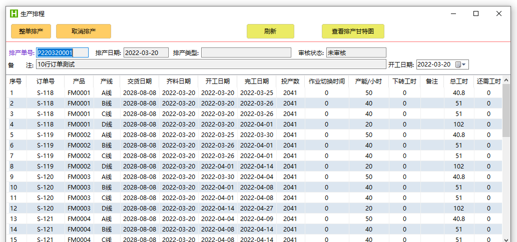 ④能综合分析订单数、库存数、良品率、产线日历等信息后进行排程