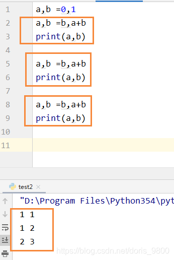 由图可以看到,看出规律了吗?? 把两个值相加的结果作为下一次的基础再加前一个的值。图片的箭头,表示替换了位置。
