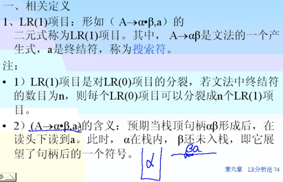 对于LR0中的某个项目集加上展望符号,构成新的项目集合。