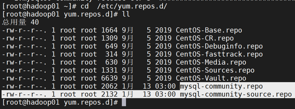 4. 去到目录下(这个目录可以修改yum源下载源,下架官方镜像,然后上传其他公司镜像)