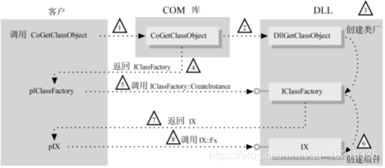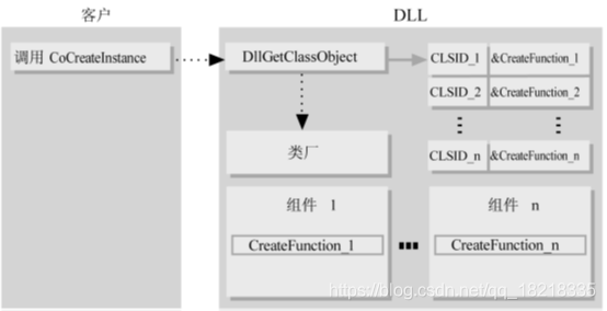 类似地, CoGetClassObject 需要DLL 中的一个特定的函数来创建组件的类厂。此函数的名称为DllGetClassObject. 。CoGetClassObject 将调用此函数完成类厂的创建.