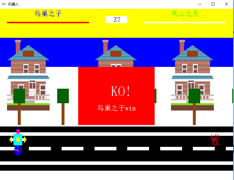 当两者的某一方血条为0时,游戏结束,效果如下: