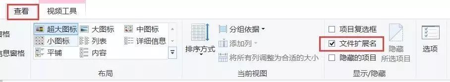 1.首先,打开电脑上的任意一个文件夹,选择顶部「查看」-在显示/隐藏板块中,勾选「文件扩展名」。
