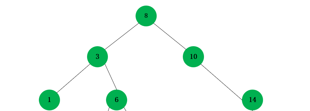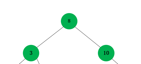 首先,要找到二叉树的根节点,这里以“8”作为本树的根节点,根据性质,“3”放在“8”的左子树上,“10”放在“8”的右子树上: