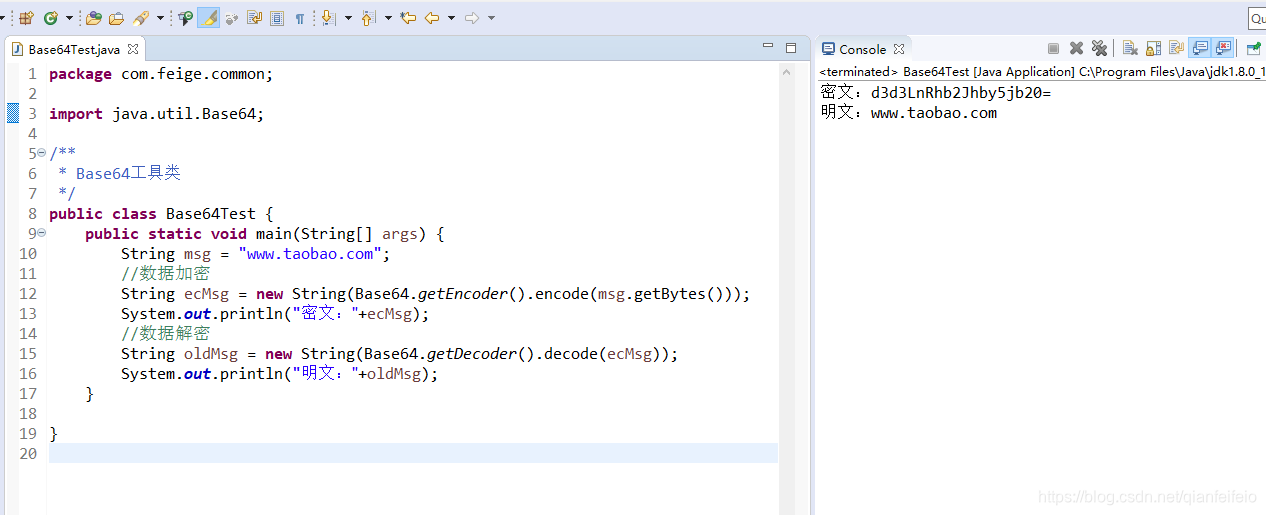 Base64是一种直接利用64位可打印字符来表示二进制数据的算法,是一种比较常见的加密算法。JDK1.8版本提供了java.util.Base64的工具类,使用Base64提供的2个内部类进行加解密操作。