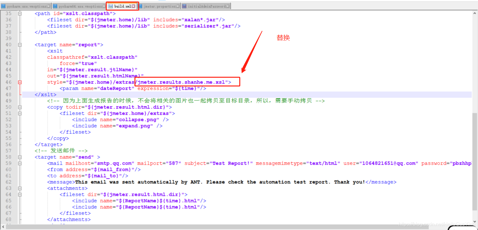 三、设置build文件的报告模板为优化后的模板jmeter.results.shanhe.me.xsl