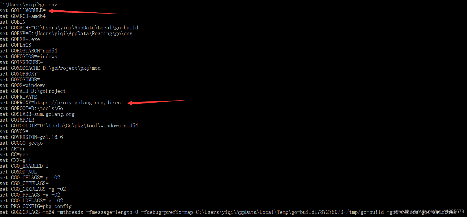 执行 go env ,输出信息如下: