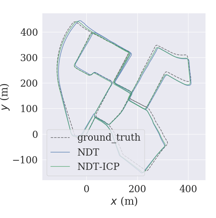 evo_traj kitti NDT.txt NDT-ICP.txt --ref=ground_truth.txt -p --plot_mode xy //绘制多个轨迹