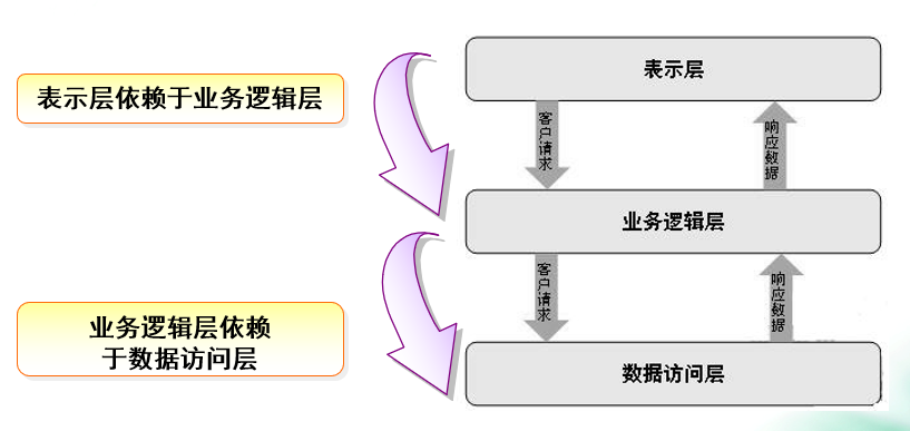 将解决方案的组件分隔到不同的层级中,同一层级的组件之间都保持很强的内聚性,不同的层级中又保持着藕断丝连的关系,这种形式有助于大型的项目开发,因为不同层级的关系有联系又不像组件之间的那种联系,就算一个层级出现了问题,也不容易将问题带到下一个层级中。一句话总结就是,内聚性,松耦合。