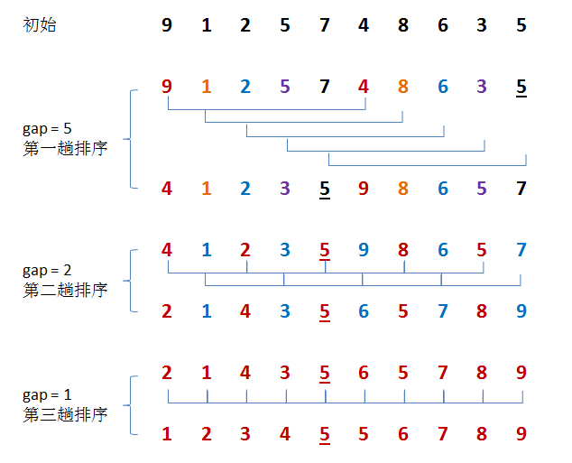 希尔排序法(缩小增量法) 属于插入类排序,是将整个无序列分割成若干小的子序列分别进行插入排序的法。在直接插入排序算法中,每次插入一个数,使有序序列只增加1个节点,并且对插入下一个数没有提供任何助。如果比较相隔较远距离(称为增量)的数,使得数移动时能跨过多个元素,则进行一次比较就可能消除多个元素交换。算法先将要排序的一组数按某个增量d分成若干组,每组中记录的下标相差d.对每组中全部元素进行排序,然后再用一个较小的增量对它进行,在每组中再进行排序。当增量减到1时,整个要排序的数被分成一组,排序完成。