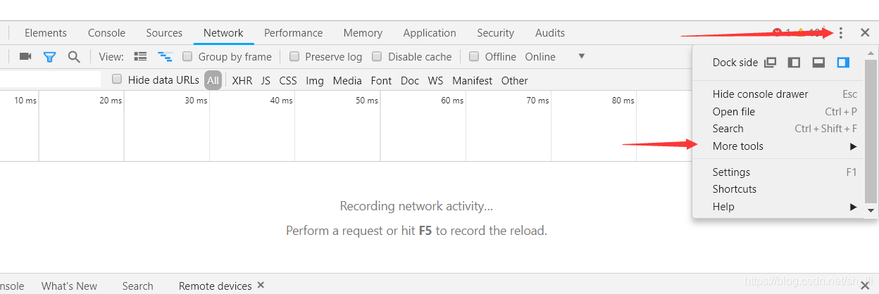电脑打开chrome – 更多工具 – 开发者工具 – More tools – remote