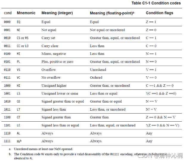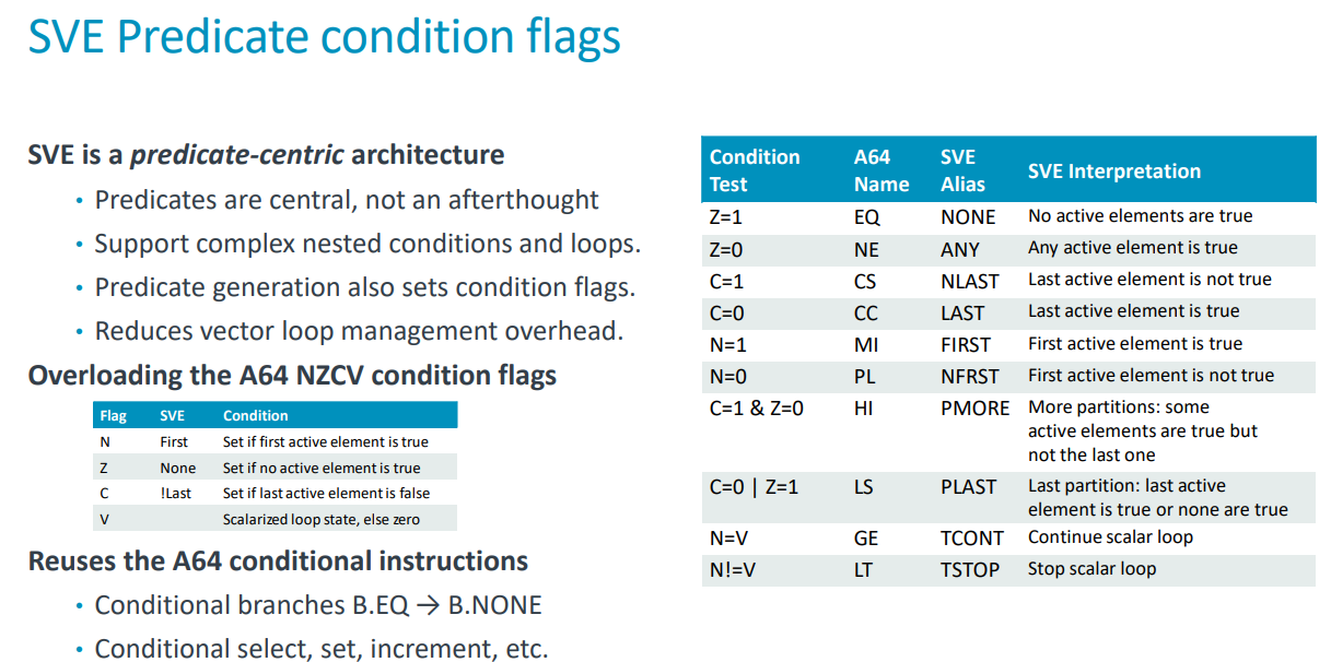 Condition Codes 和 SVE Predicate condition flags 有不同的含义