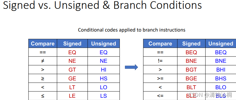 3、比较指令对应signed/unsigned有不同的名称,参考