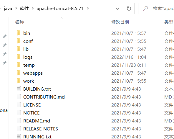 - bin:命令文件存访问的目录;比如:启动Tomcat,关闭Tomcat