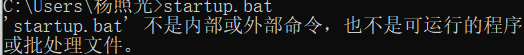 - 在 DOS窗口,输入:startup.bat 启动Tomcat。如果出现以下文字。说明我们还没有配置Tomcat的环境变量。需要将Tomcat 下的 bin 目录配置到系统变量中