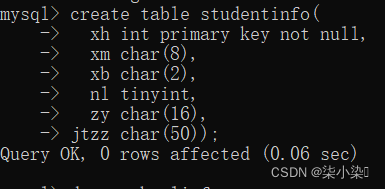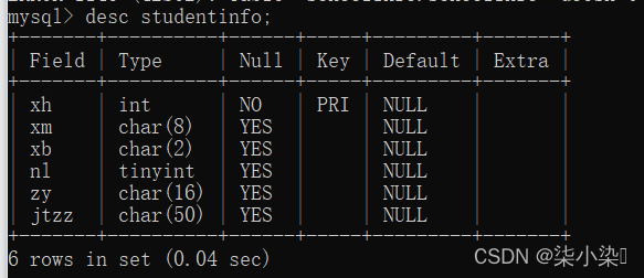 1.在schoolInfo数据库中创建一个studentinfo 表,表结构如下: