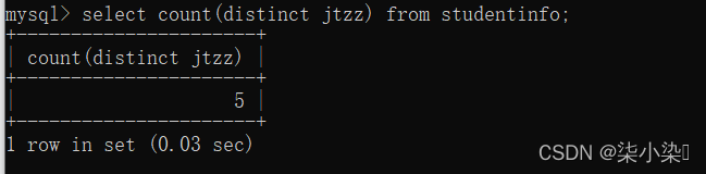 count(distinct 列名):查询所查列名的行数,取掉重复的数据,且不允许值为NULL的行数。
