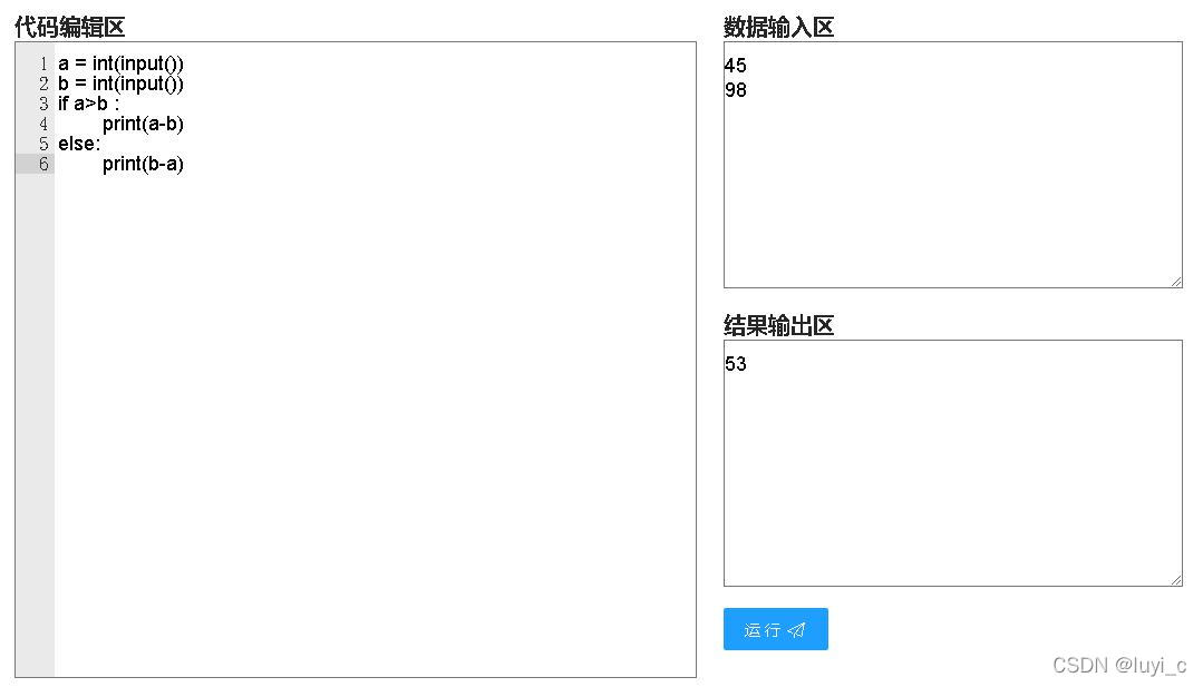 已实现python在线编辑并运行,可以传输多个输入参数,为后期作python自动评测做好准备。html界面如下图所示。资源参考: