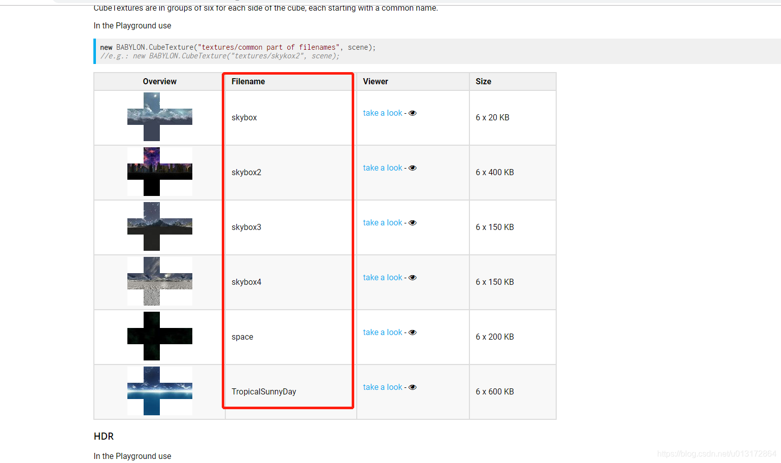 skyboxMaterial.reflectionTexture = new BABYLON.CubeTexture("图片文件夹名/图片相同的前缀名", scene);