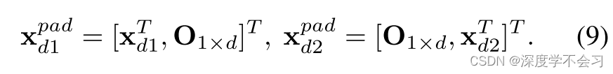 双流网络和非对称FC层网络的结构是手动设计的,并且在训练过程中是固定的,而单流网络可以通过学习特定领域的节点来隐式地进化网络结构,这可能会产生更优化的结构。 为此,我们建议使用零填充输入来刺激特定领域的响应。 对于来自两个域 xd1 ∈ Rd 和 xd2 ∈ Rd 的输入,应用零填充,如下所示