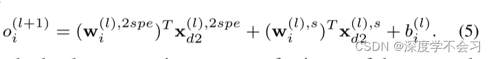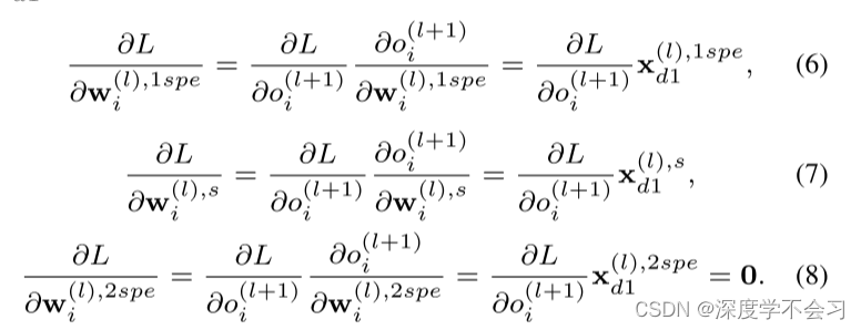 定义了一些用于分析的符号。 令 L 表示损失函数。 令 o(l+1) i 表示第 l + 1 层激活函数之前第 i 个节点的 输出,,x (l) 表示层l+1的输入,w (l) ,b (l) i表示权重和偏置参数,即o (l+1) i =(w (l) i) T * x (l) +b (l) i。使用上述定义的分类,在不丧失通用性的情况下,X(l)可分解为三个parts1 x(l)=[x(l)1 spe;x (l) 2 spe;x(l)s]其中三个组件分别表示domain1特定节点、domain2特定节点和共享节点。我们还可以将w (l) i表示为w (l) i = [w (l),1 spe;W (l),2 spe;W (l),S] 。
