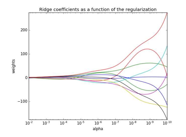 越小的参数说明模型越简单,越简单的模型则越不容易产生过拟合现象。
