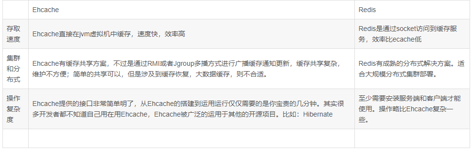 二、Ehcache与Redis比较