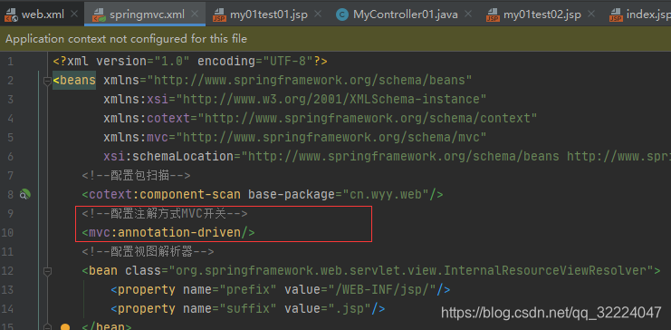 使用 <mvc:annotation-driven/> 标签来配置,它是一种简写模式,它会自动注册处理器适配器,配置方式如下: