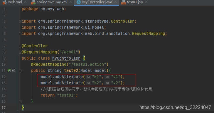 返回model&view只是一串数据—需要视图解析器去解析—找到view后,将model中的数据填充到view中,然后在前端展示