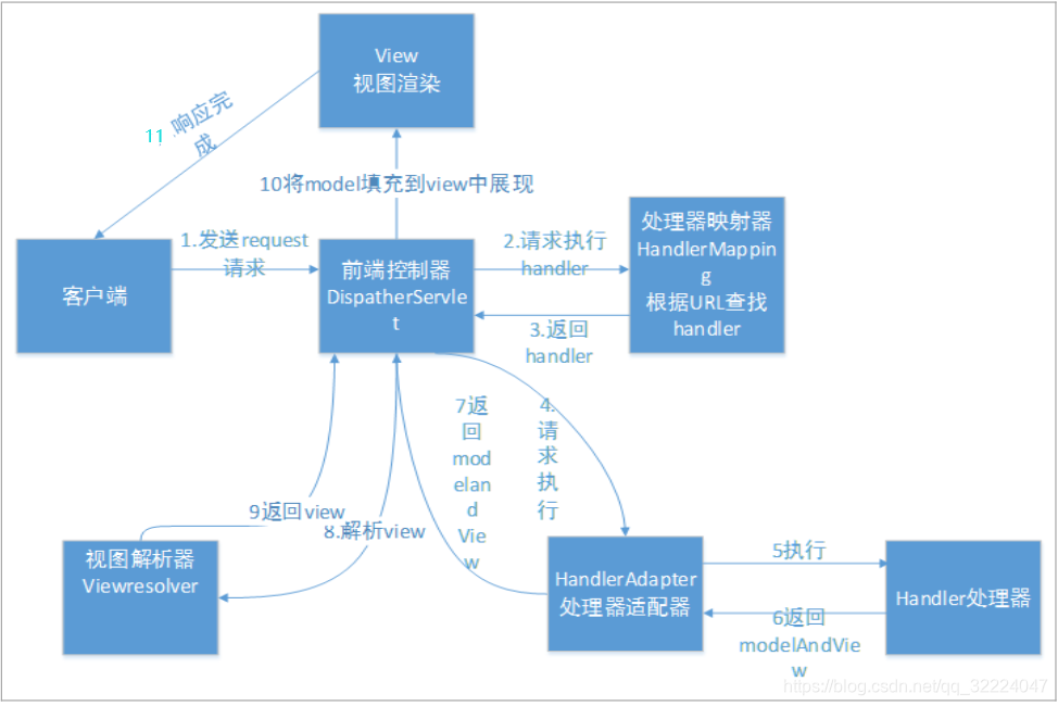 spring mvc也是依赖servlet,所以spring mvc的请求处理是从一个servlet开始,
