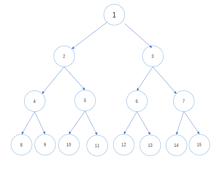 若节点按层编号,如上图编号,则i节左孩子编号为2 * i,右孩子编号为2 * i + 1,双亲节点为i / 2。(除法向下取整)