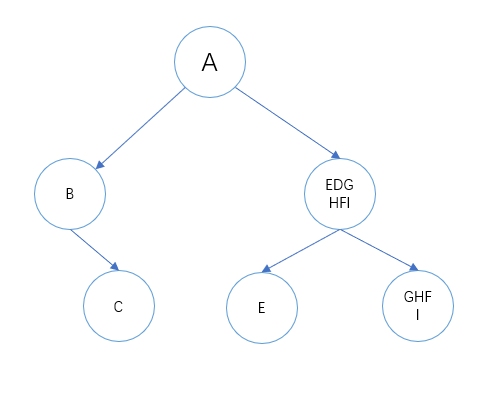 先序序列A一定是根节点,中序序列中BC在A左边DGHFI在A右边,所以BC一定是左子树,EDGHFI一定是右子树: