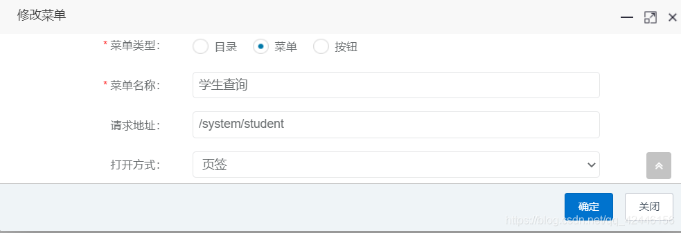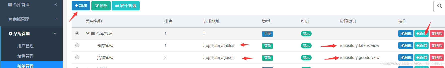 去菜单管理中添加我们的新模块并配置好请求路径和标识权限保存刷新