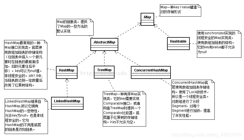 Map 是一种把键对象和值对象映射的集合,它的每一个元素都包含一对键对象和值对象。 Map没有继承于Collection接口 从Map集合中检索元素时,只要给出键对象,就会返回对应的值对象。