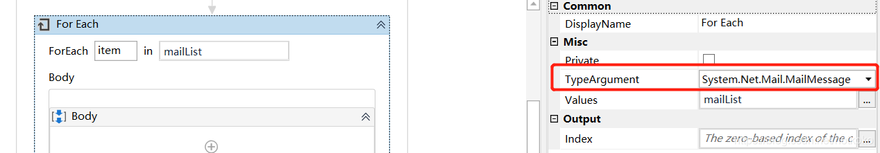 注意:遍历时需要注意设置参数的类型为MailMessage,如下图所示
