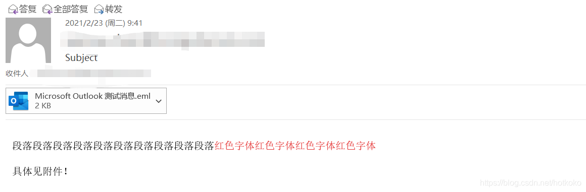 2、发送HTML格式邮件,并将需回复的原邮件以附件的形式发送