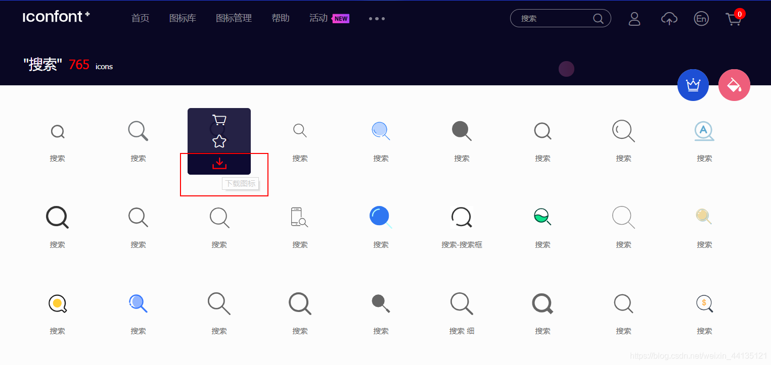 4. 将鼠标悬停在中意的搜索图标上面出现如下图,点击下载即可;