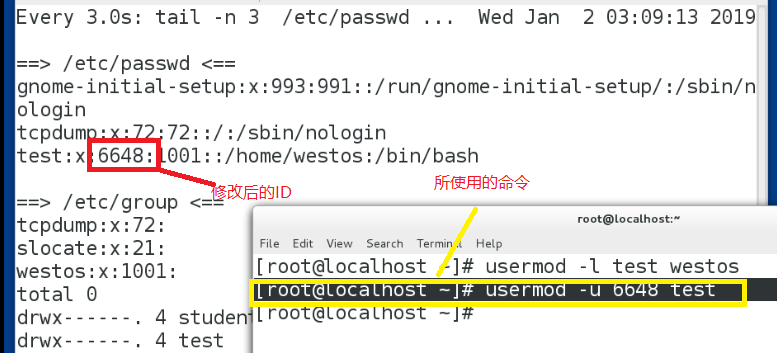 使用命令:usermod -u 6648 test