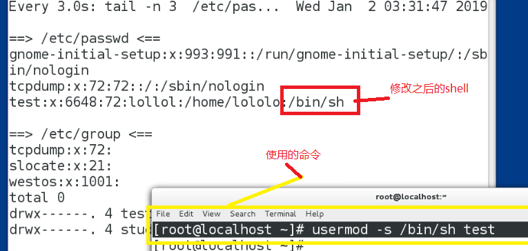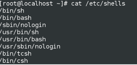 注意的是:修改用户的shell时,必须是文件中已经存在的,可以使用命令: cat /etc/shell