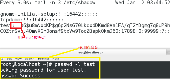 使用命令:usermod -L test
