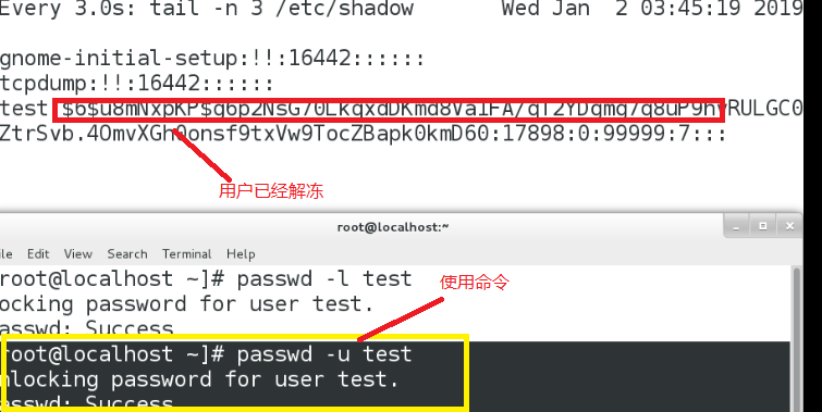 使用命令:passwd –u test