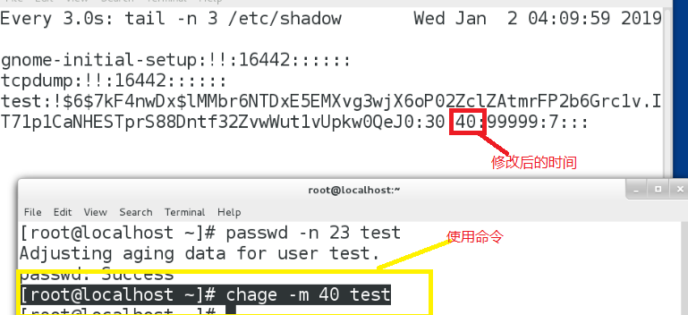 使用命令:chage -m 40 test