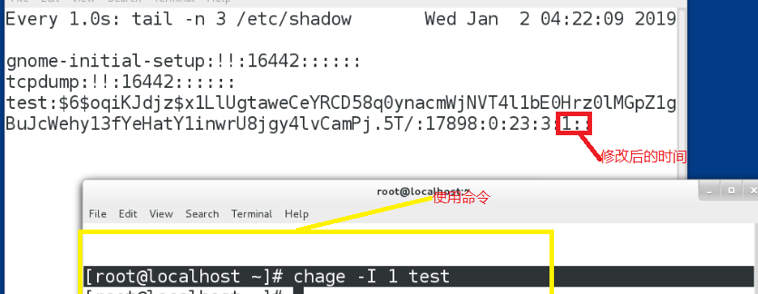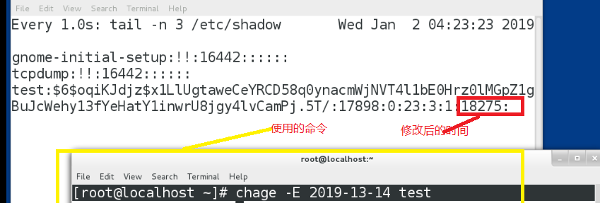 使用命令:chage -E 2019-13-14 test