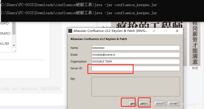 ① 打开下载的破解工具,运行confluence_keygen.jar