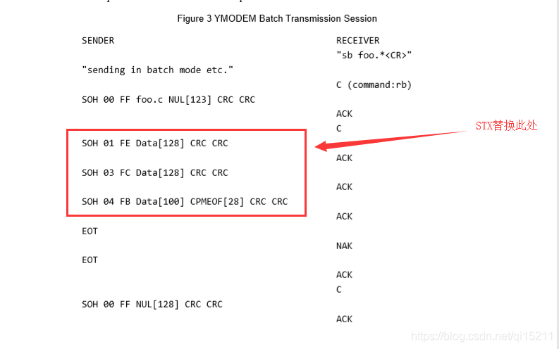 以SOH举例传输过程。STX只需要将文件信息帧,结束帧保留,文件内容包替换为STX即可