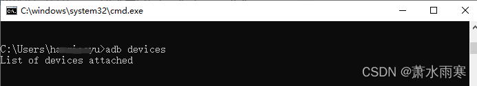 数据线连接电脑与手机设备后,开发者选项-USB调试已打开,cmd命令窗口运行adb devices命令没有找到真机设备,如下: